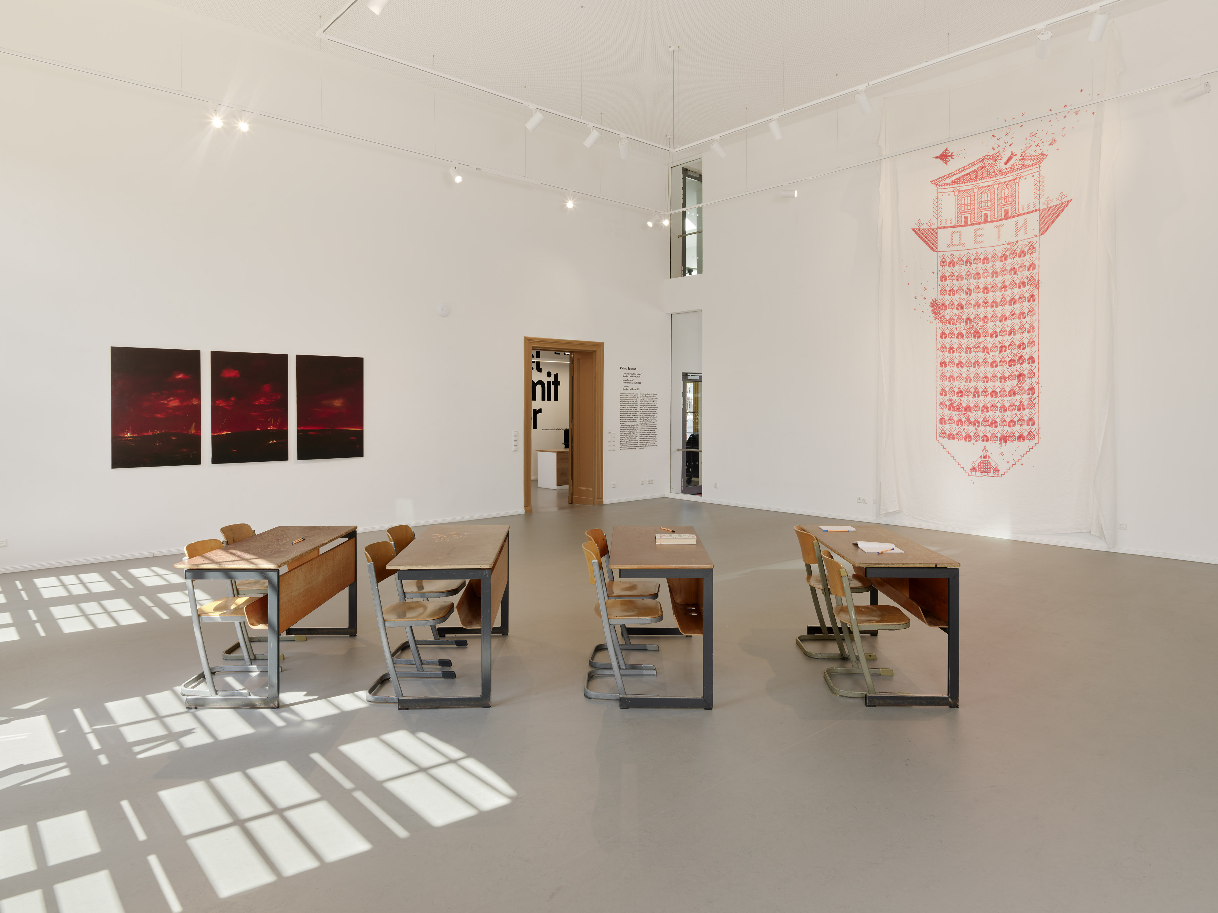 Gerade, weil Krieg in den Medien für uns aktuell allgegenwärtig erscheint, bemüht sich die Ausstellung einzelne Perspektiven, Geschichten und Recherchen in den Mittelpunkt zu stellen und auf diese Weise eine vertiefende Auseinandersetzung zu fördern. Die Künstlerinnen und Künstler der Gruppenausstellung „Spiel mit Feuer“ thematisieren in ihren Werken einen Krieg, der gegenwärtig stattfindet oder blicken zurück in die Geschichte.